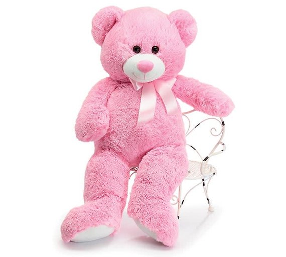 This adorbale blush pink bear is 22 inches tall sitting.